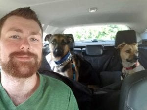 Mike with rescue pups Stella and Mac.