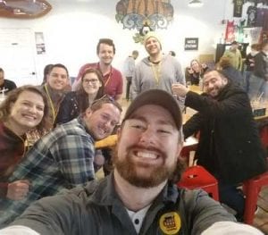 Mike hangs out with guests on a past brewery tour in Baltimore.